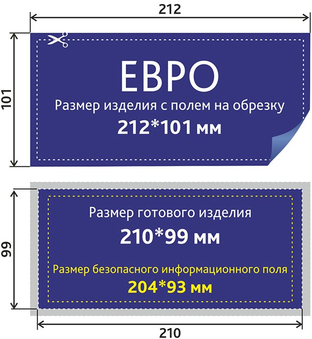 Размер сертификата евро с припусками на обрез 212x101 мм (т.е. по 1 мм с каждого края);
